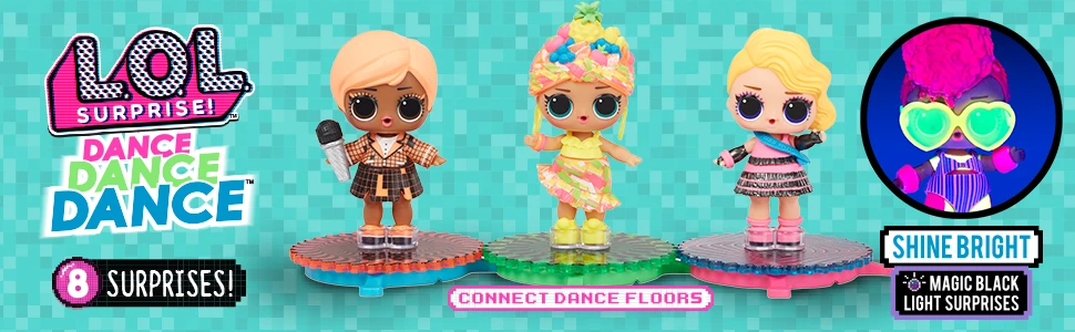 LOL Surprise Dance Dance Dance dolls are ready to perform and show off their moves at the ultimate LOL Surprise dance-off! Each comes with 8 surprises, including a black light and their own dance card, which features holographic art that shows you how to do a unique dance move.