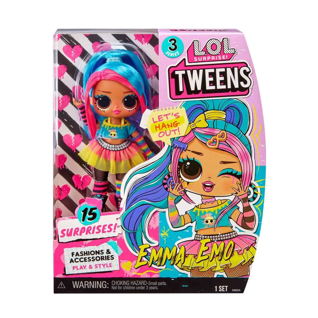 Introducing the best-selling LOL Surprise Tween Series 3 fashion dolls: say hello to Emma Emo! Emma is a bubbly, energetic artist who is drawn to all things bright, colorful, and cute.