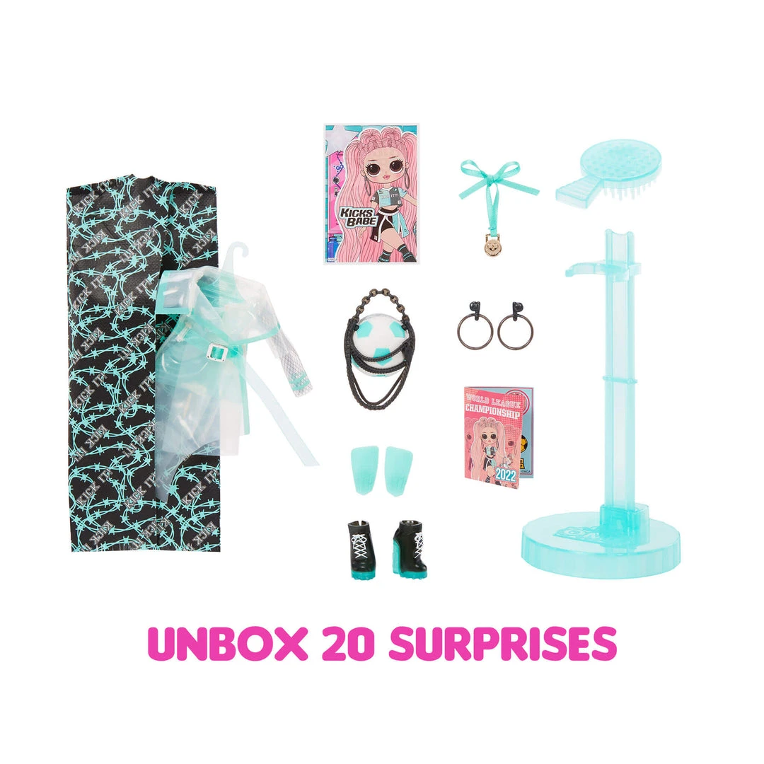 Introducing the all-new LOL Surprise OMG Sports fashion doll Kicks Babe with 20 surprises! We sisters are here to win, the competition is fierce but so are we. With the heart of a champion and the strength of a queen, we always surprise the world.