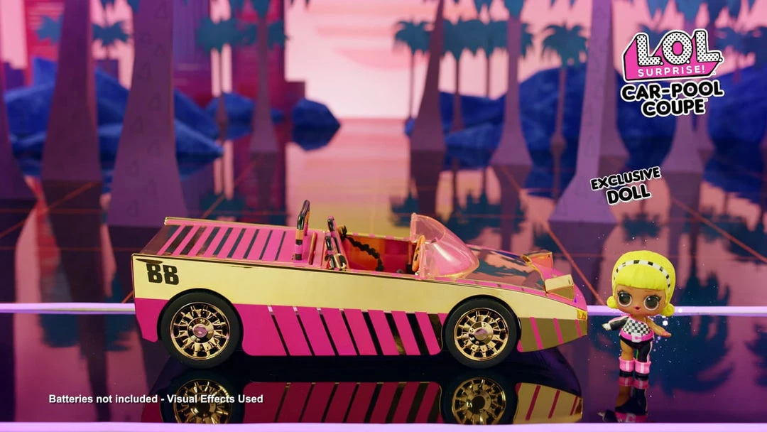 LOL Surprise dolls can drive in style with the LOL Surprise Car-Pool Coupe with exclusive doll, surprise pool and dance floor.