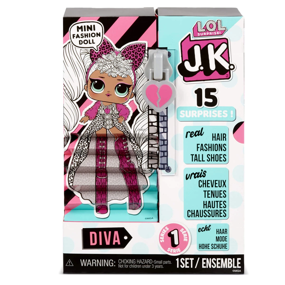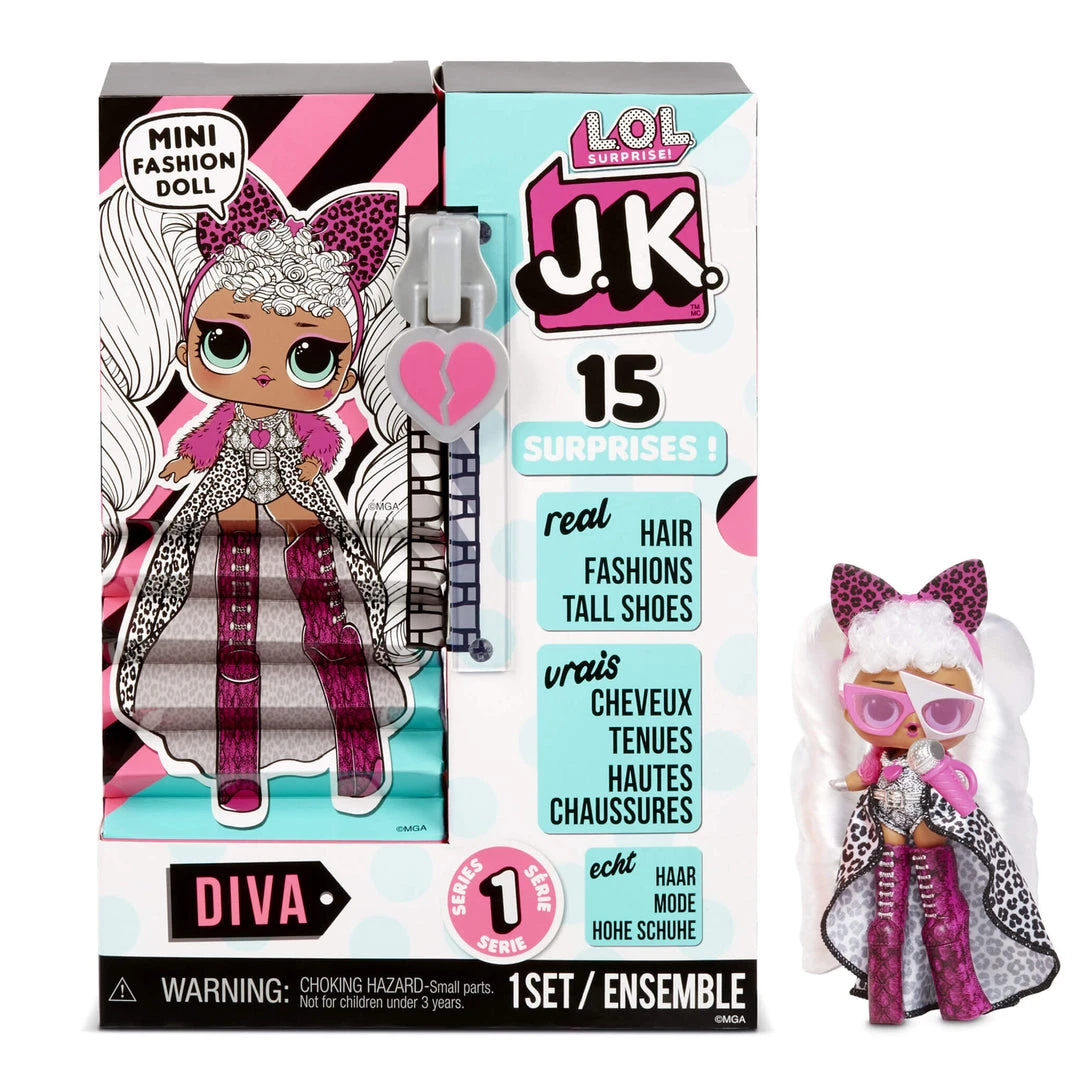 Unbox 15 surprises including a mini fashion doll with LOL Surprise JK. Fan favorite character Diva is back, but she got a fierce, runway-ready makeover.