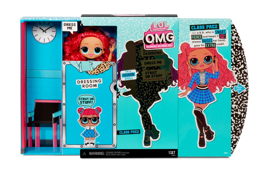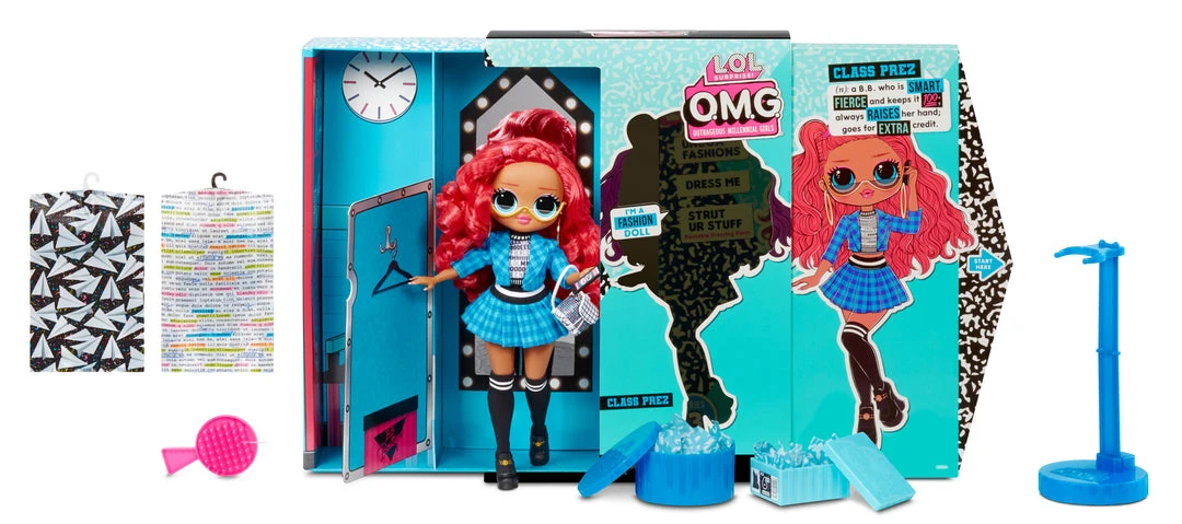 Unbox LOL Surprise OMG fashion doll – Class Prez– with 20 surprises.