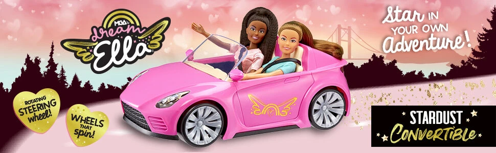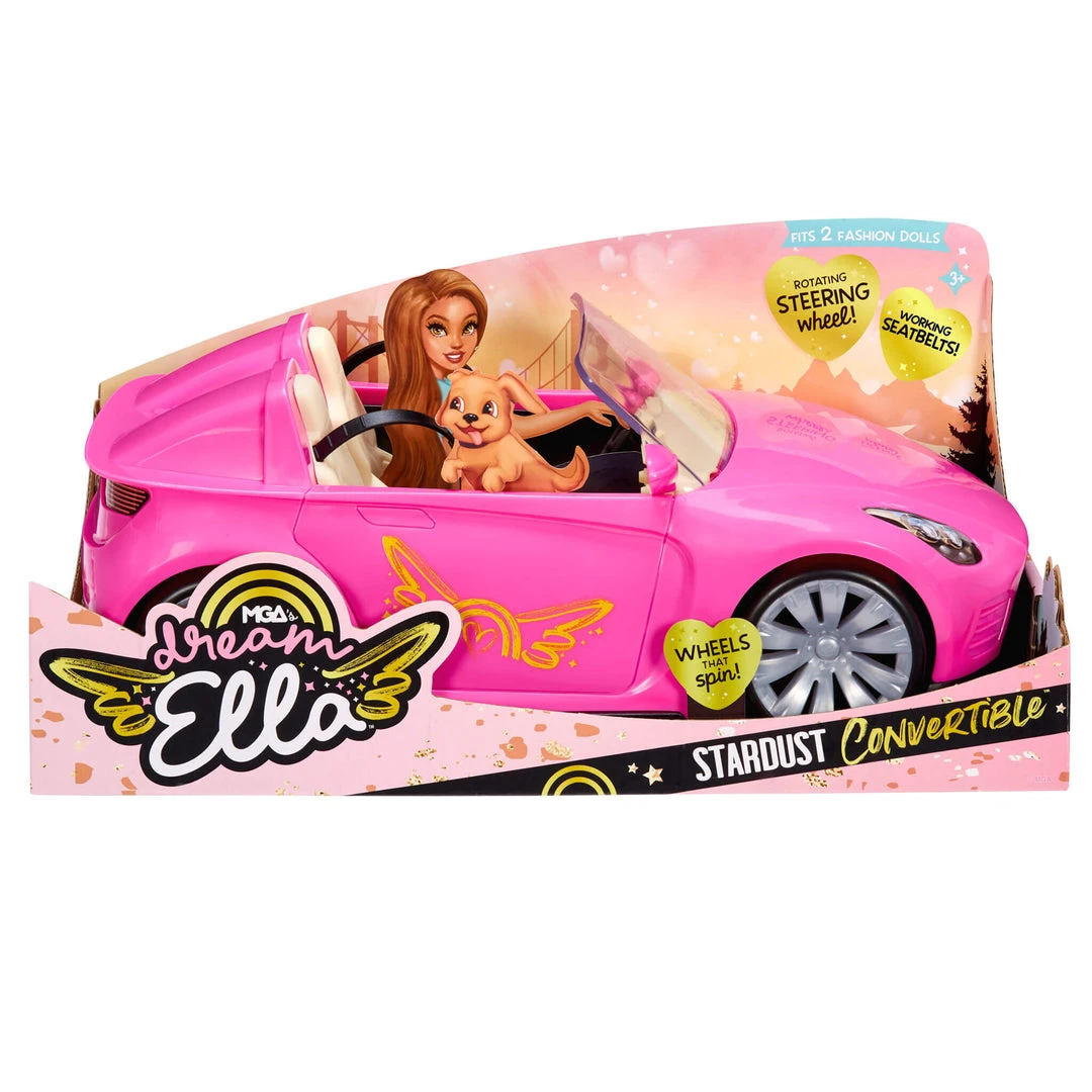 The MGA’s Dream Ella Stardust Convertible is the perfect car for your favorite fashion dolls! Ride in style in the fashionable sporty car.