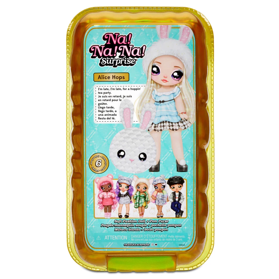 Na Na Na Surprise dolls are the first-ever soft, posable fashion dolls with printed face and fashion details. Now featured in a window box to show off all the quality details, it will be easier than ever to collect them all!​ Alice Hops comes with a tag with her name, birthday and a little about her.