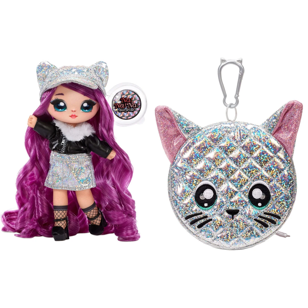 Level up your glam game with the Na Na Na Surprise 2-in-1 Soft Fashion Doll Glam Series! You get 2-in-1 value with a soft fashion doll plus a collectible clip-on metallic fabric animal pom purse!