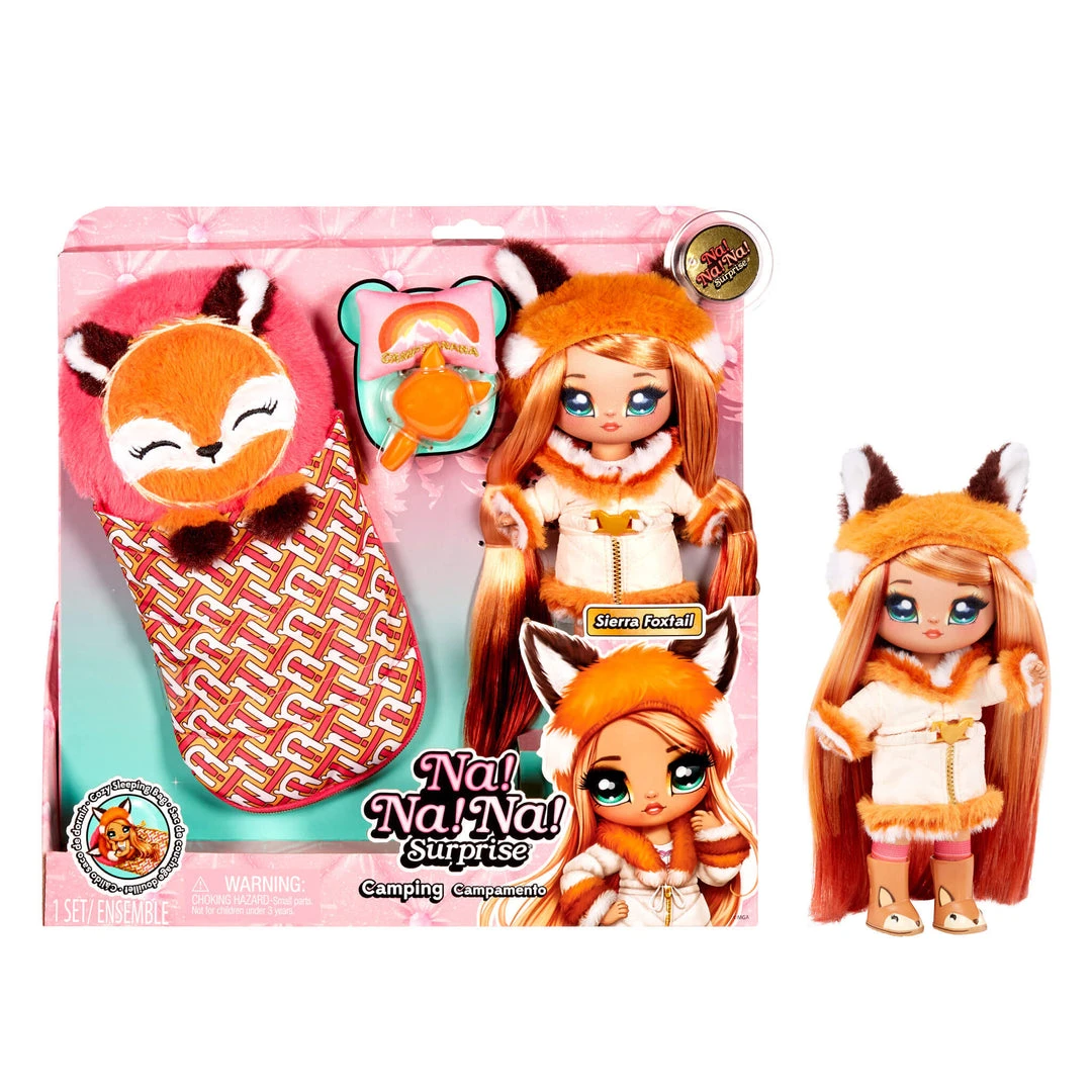 Time to explore the outdoors in style with the all new Na Na Na Surprise Camping Dolls! You get 2-in-1 value with a soft fashion doll plus a cozy animal-themed sleeping bag!