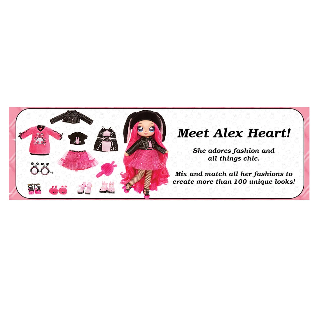 POP balloons to reveal fashions and accessories. Then, reveal a NEW 11″ Na Na Na Surprise Teens fashion doll. Meet Alex Heart!