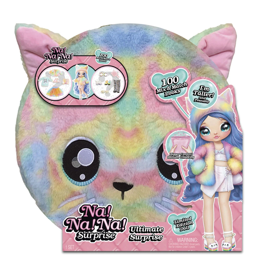 Unbox so many glamorous fashion surprises and a gorgeous, taller Na Na Na Surprise Teens fashion doll from the GIANT Rainbow Kitty pom. This confetti balloon unboxing is bigger than ever!