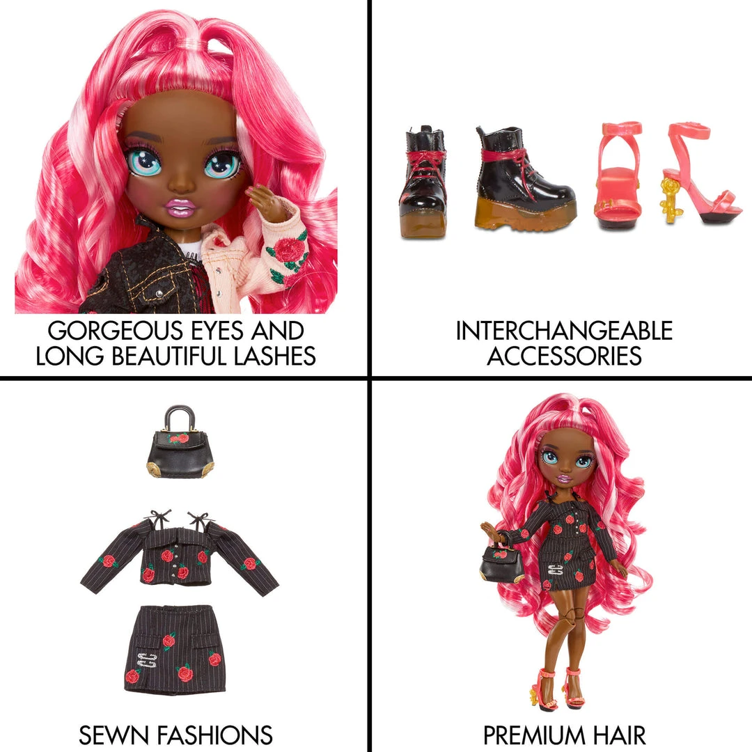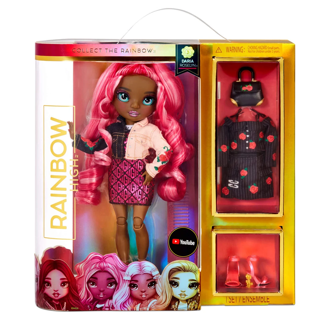Daria Roselyn has a unique design and is dressed in rose (pink and red) from head to toe. She has gorgeous detailed features in her fashion, beautiful hair, long eye lashes and glass eyes. Collect the Rainbow of all the gorgeous Rainbow High fashion dolls.