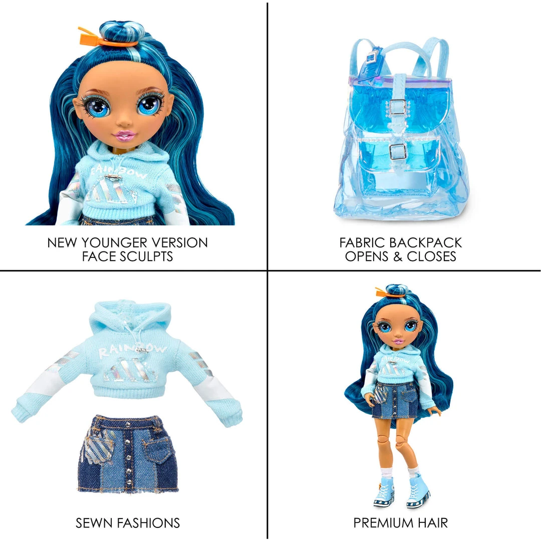 Collect the rainbow! Collect all 6 Junior High Fashion Dolls – Ruby Anderson, Poppy Rowan, Sunny Madison, Jade Hunter, Skyler Bradshaw, Violet Willow.
