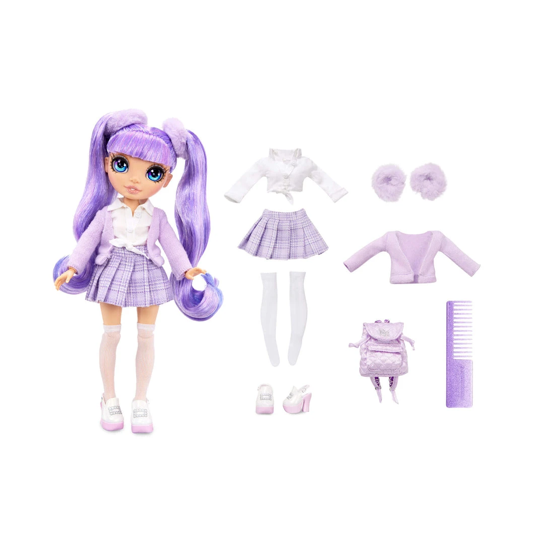 Collect the rainbow! Collect all 6 Junior High Fashion Dolls – Ruby Anderson, Poppy Rowan, Sunny Madison, Jade Hunter, Skyler Bradshaw, Violet Willow.