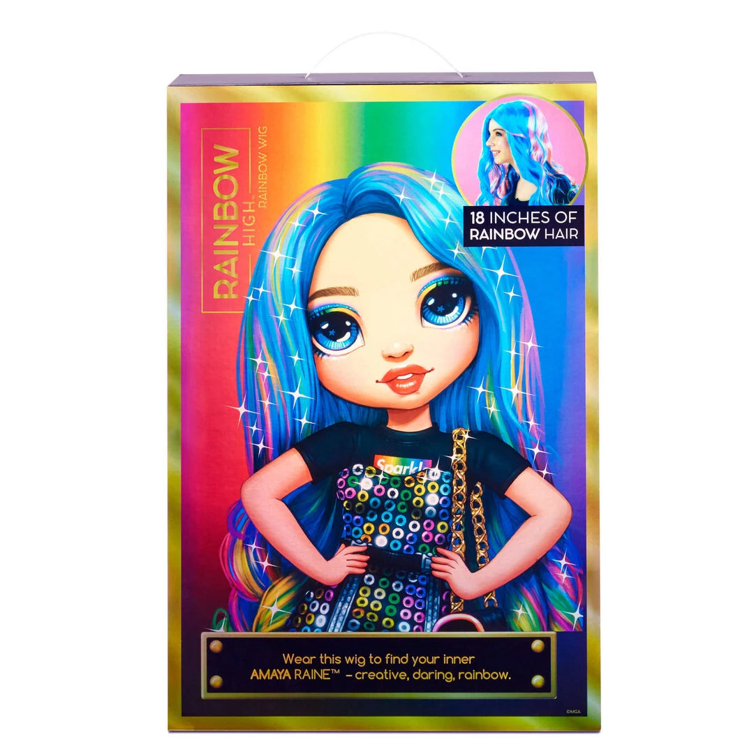 Transform into a character from Rainbow High when you put on this gorgeous, rainbow wig.